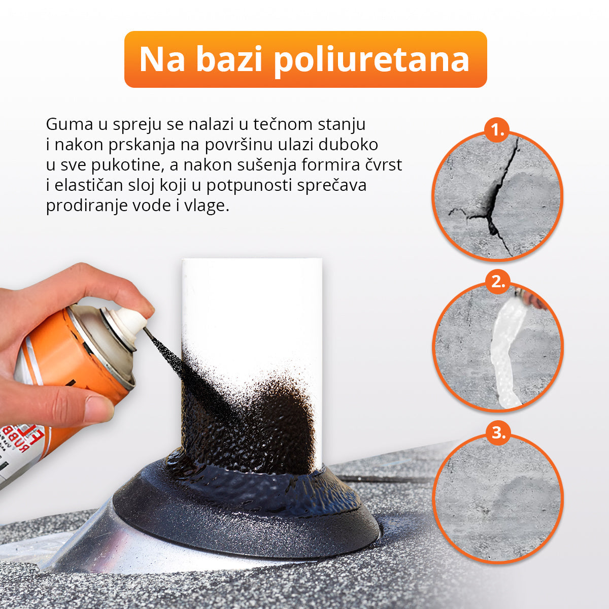 Guma se u spreju nalazi u tečnom stanju i nakon prskanja na površinu ulazi duboko u sve pukotine i nakon sušenja formira čvrst i elastičan sloj koji u potpunosti sprečava prodiranje vode i vlage.