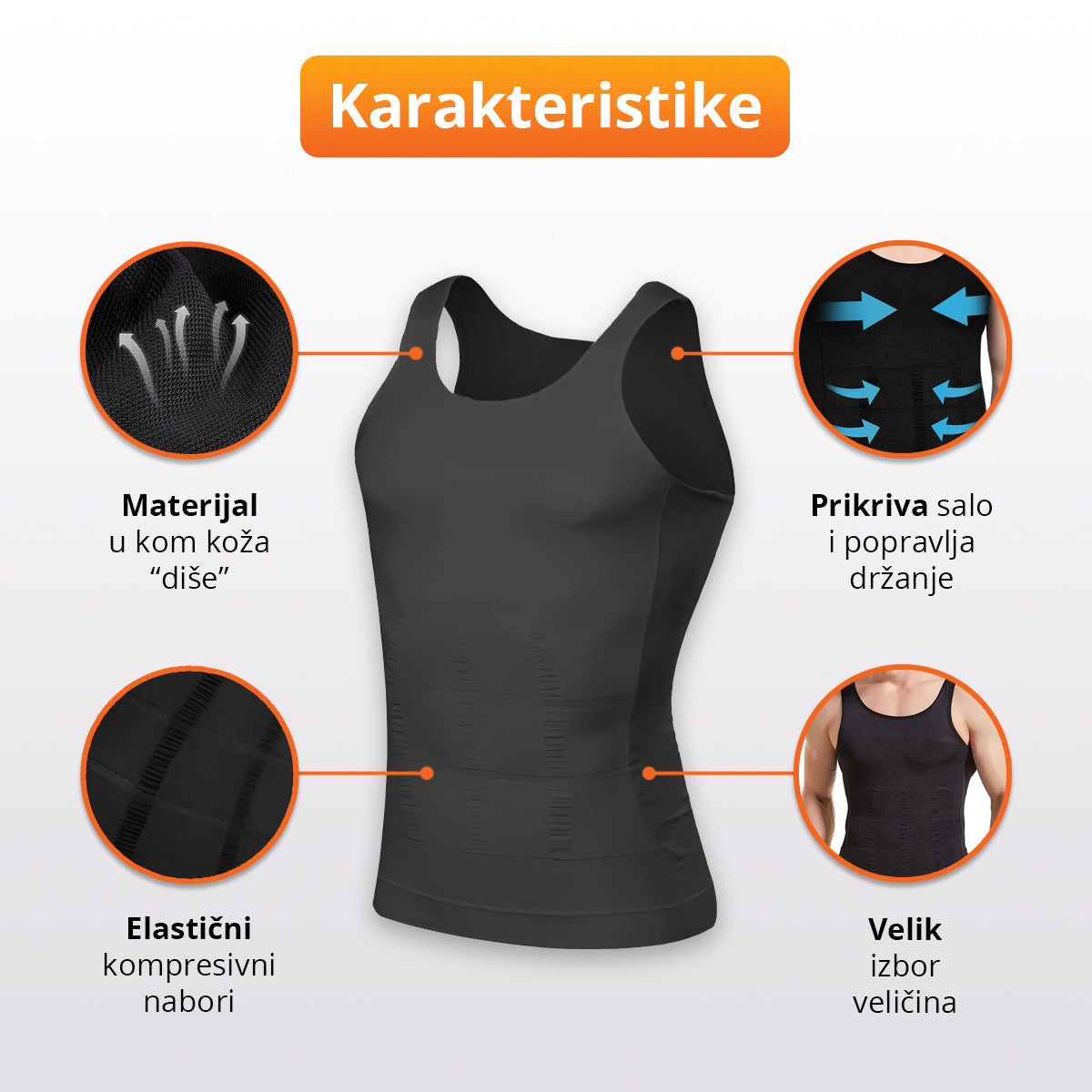 Majica svojim kompresivnim dejstvom ravnomerno raspoređuje sav višak i izravnava stomak. Možete bezbrižno dočekati predstojeće slave i praznike bez ikakve griže savesti jer ćete izgledati odlično u svakoj prilici.